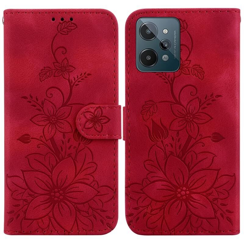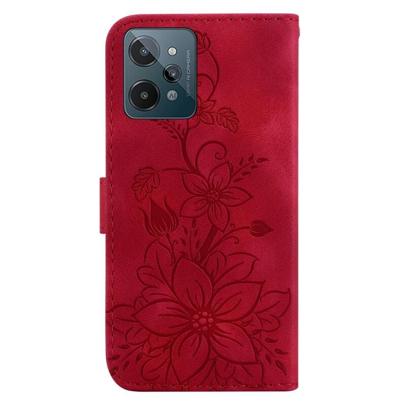 For Realme C31 Lily Embossed Leather Phone Case(Red)