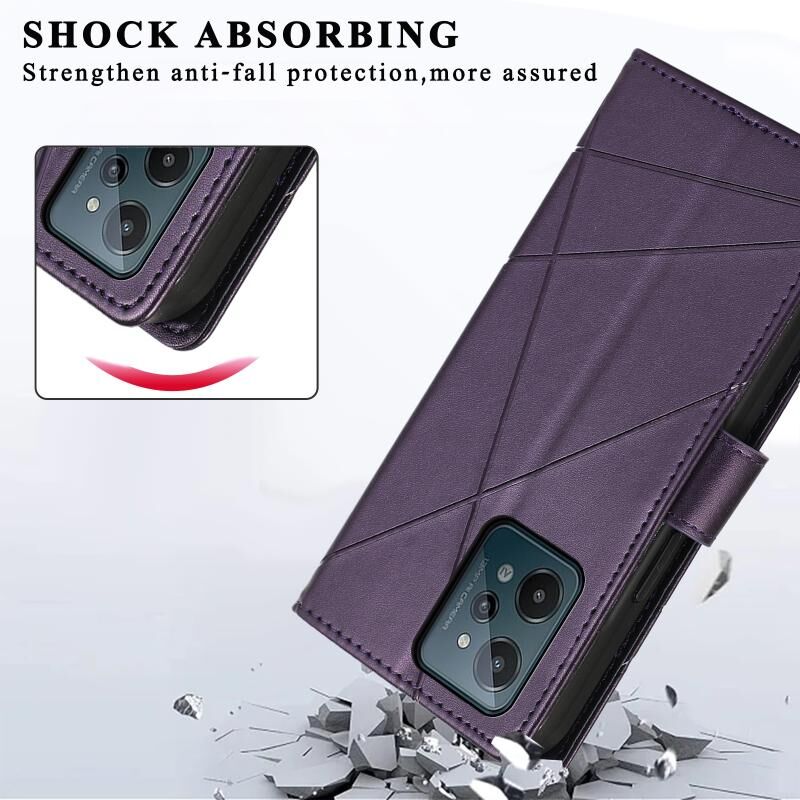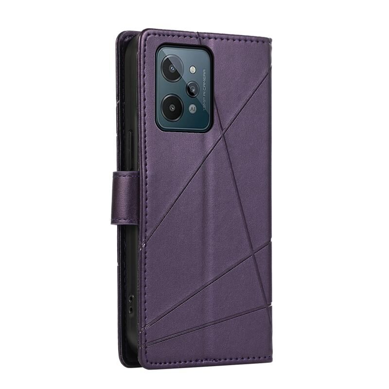 For Realme C31 PU Genuine Leather Texture Embossed Line Phone Case(Purple)