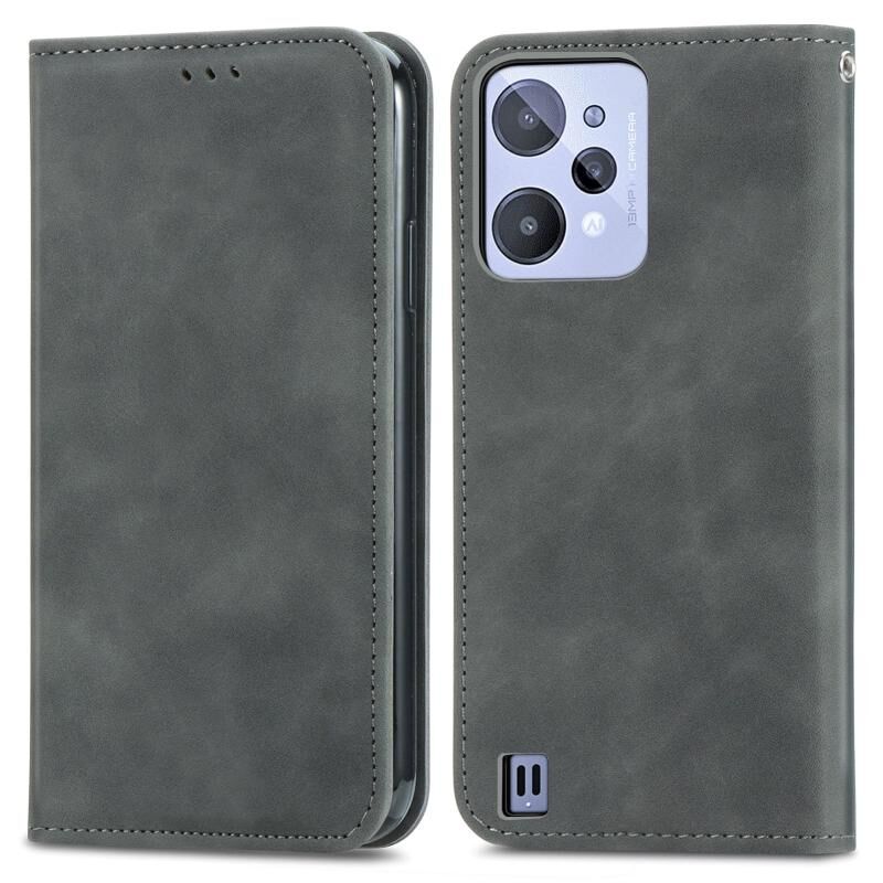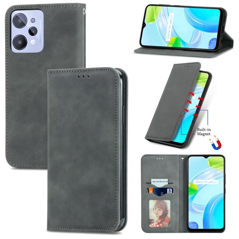 Για Realme C31 Ρετρό δέρμα αίσθηση μαγνητικό Flip υπόθεση τηλεφώνου δέρμα (Γκρι)