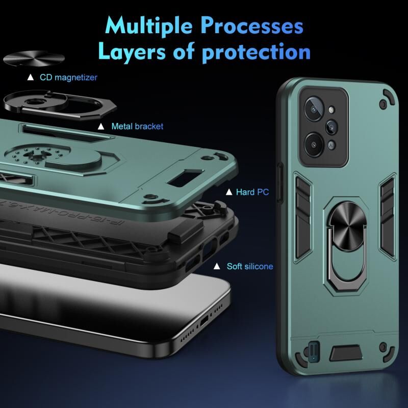 Θήκη τηλεφώνου για Realme C31 ανθεκτική στις κρούσεις με μεταλλική βάση δακτυλιδιού (Μαύρο)