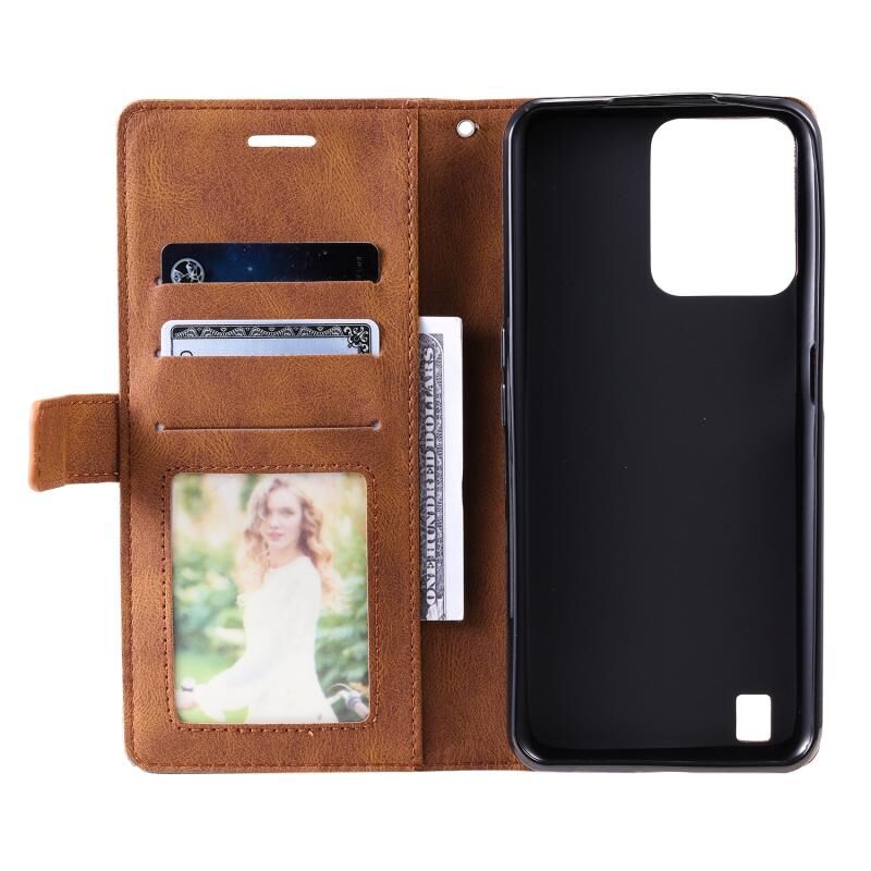 Θήκη τηλεφώνου από δέρμα με αίσθηση αφής και ραφές για Realme C31 (Καφέ)