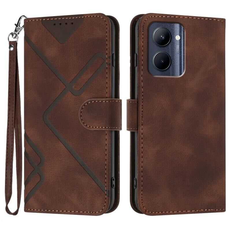 Για το Realme C33 2022 Global/2023 Global Line Pattern Skin Feel Leather Phone Case (Coffee)