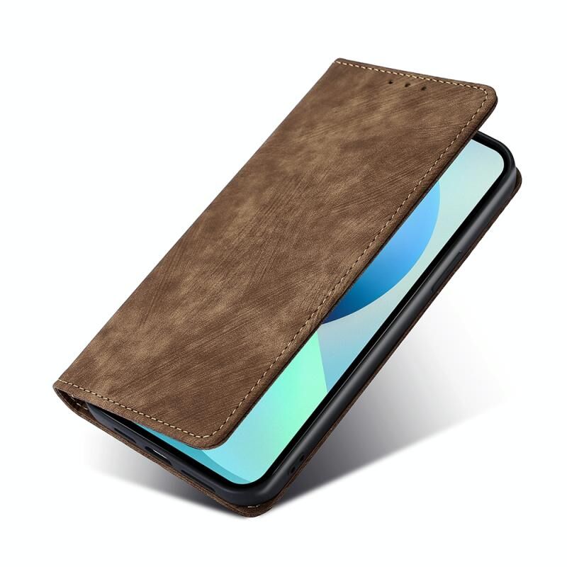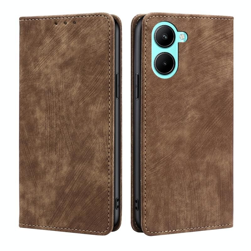Για Realme C33 4G RFID Anti-theft Brush Μαγνητική θήκη τηλεφώνου από δέρμα (καφέ)