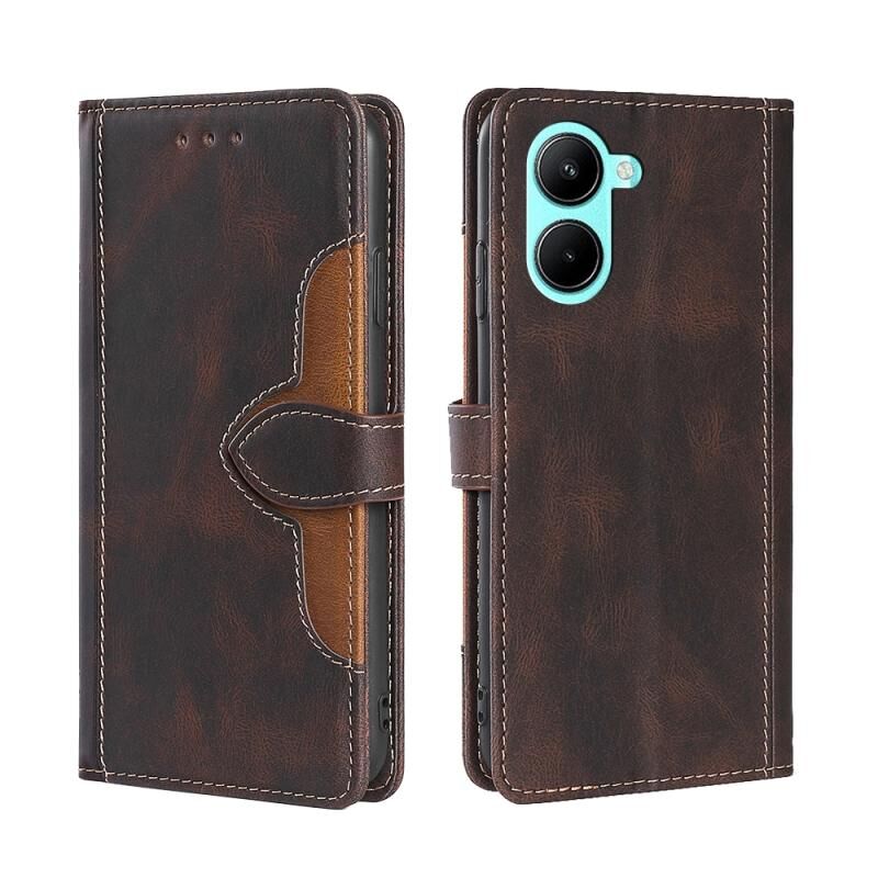 Για Realme C33 4G δέρμα αίσθηση μαγνητική πόρπη δερμάτινη θήκη τηλεφώνου (καφέ)