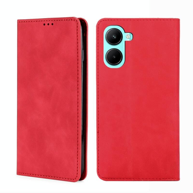 Για το Realme C33 4G Skin Feel μαγνητική οριζόντια Flip δερμάτινη θήκη τηλεφώνου (κόκκινο)