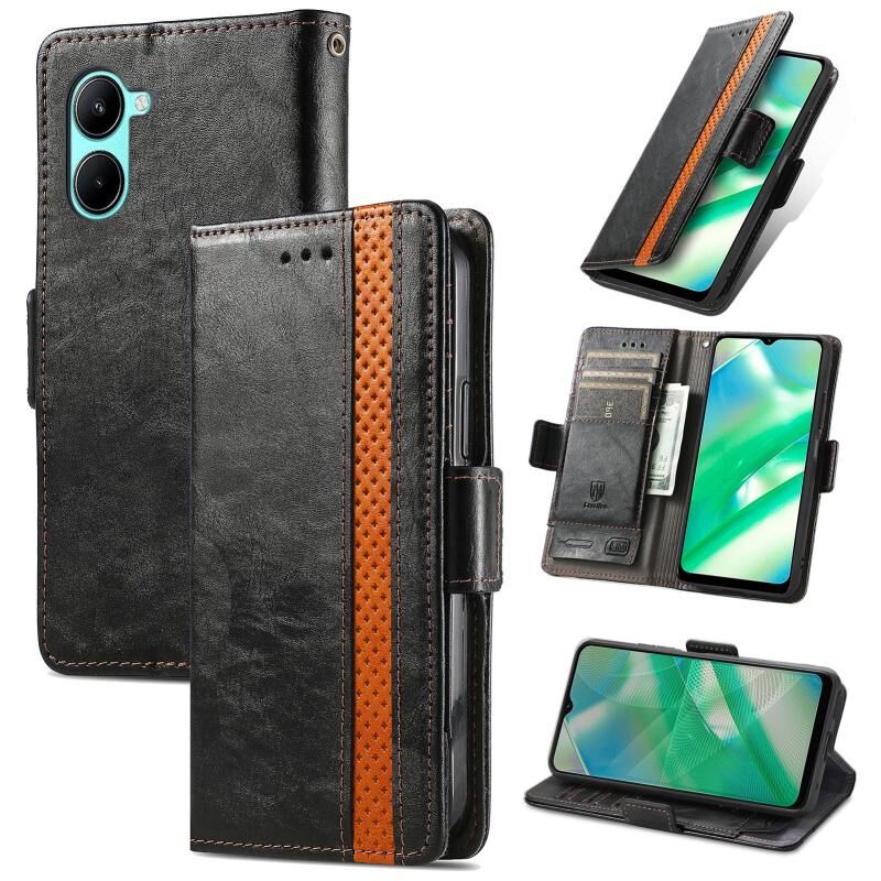 For Realme C33 CaseNeo Splicing Dual Magnetic Buckle Leather Phone Case(Black)