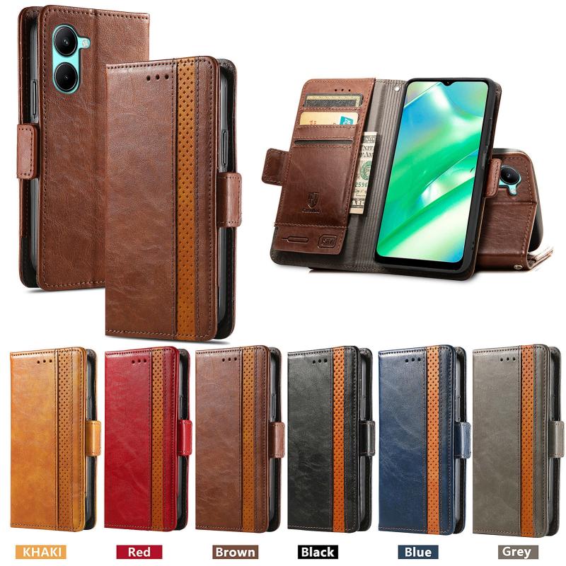 For Realme C33 CaseNeo Splicing Dual Magnetic Buckle Leather Phone Case(Brown)