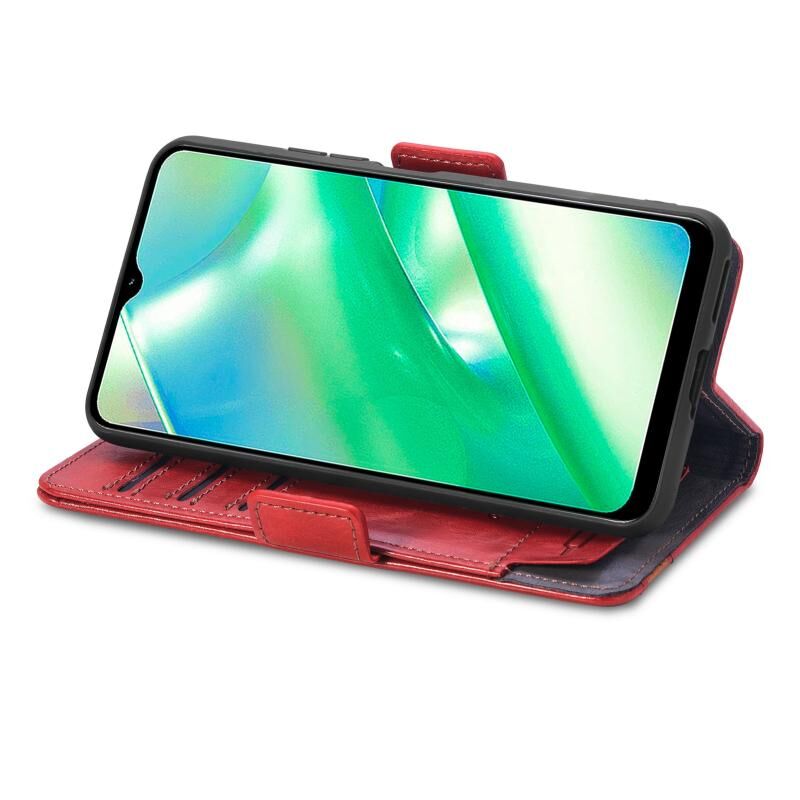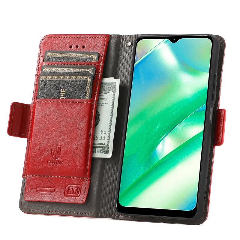 For Realme C33 CaseNeo Splicing Dual Magnetic Buckle Leather Phone Case(Red)