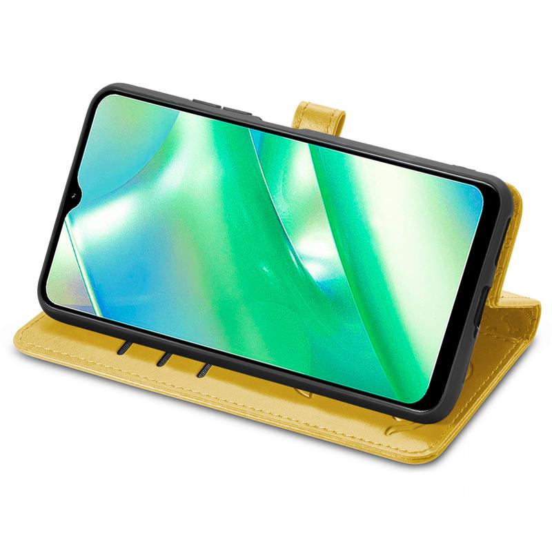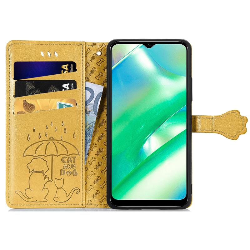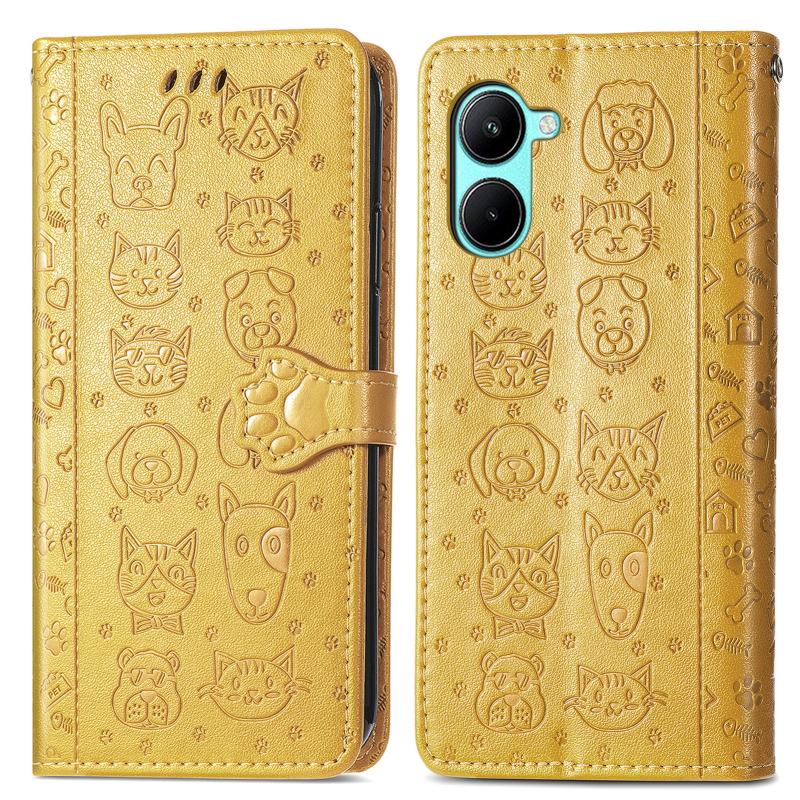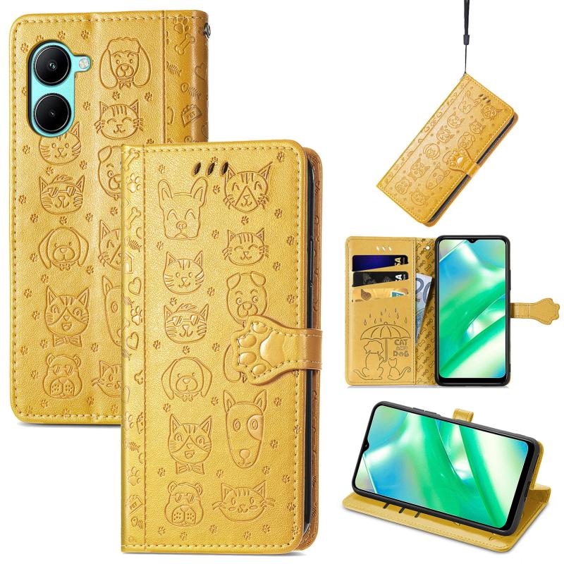 For Realme C33 Cat and Dog Embossed Leather Phone Case(Yellow)