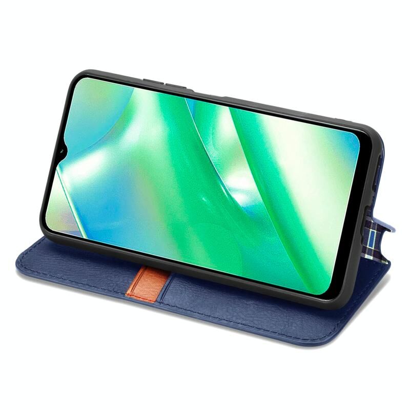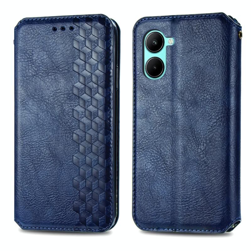 Για το Realme C33 Cubic Grid Pressed μαγνητική δερμάτινη θήκη τηλεφώνου (μπλε)