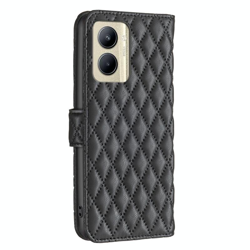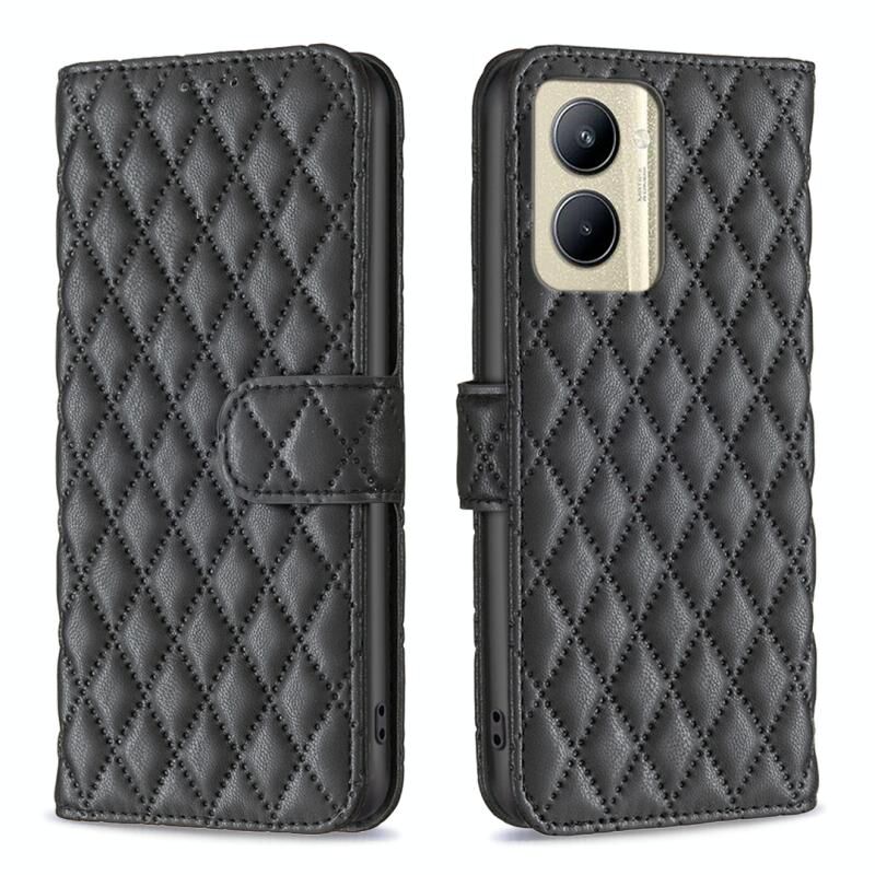 Για Realme C33 Diamond Lattice πορτοφόλι Flip δέρμα τηλέφωνο υπόθεση (Μαύρο)