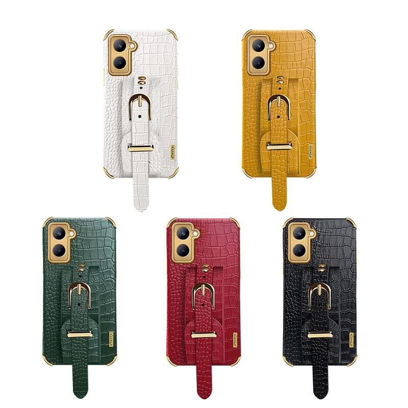 Θήκη για Realme C33 με Επικαλυψία TPU, Δερμάτινη με Υφή Κροκόδειλου και Λουρί Καρπού (Κίτρινο)