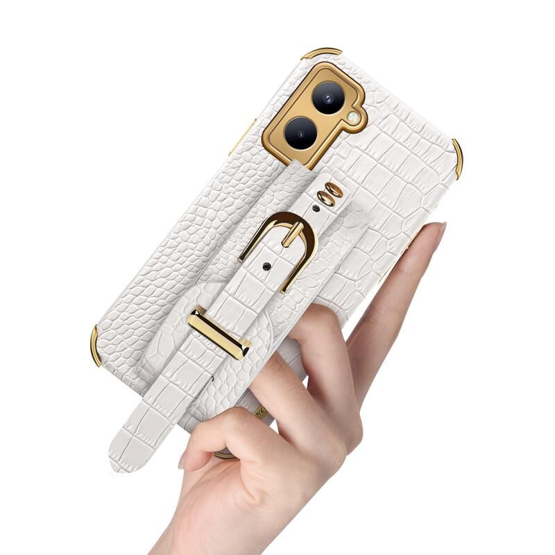 Θήκη για Realme C33 με Επικαλυψία TPU, Δερμάτινη με Υφή Κροκόδειλου και Λουρί Καρπού (Κίτρινο)