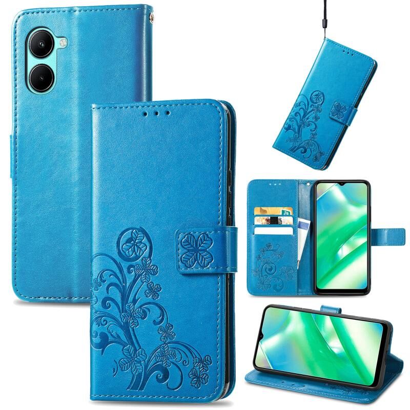 Για Realme C33 τετράφυλλο κούμπωμα ανάγλυφο αγκράφα δερμάτινη θήκη τηλεφώνου (μπλε)