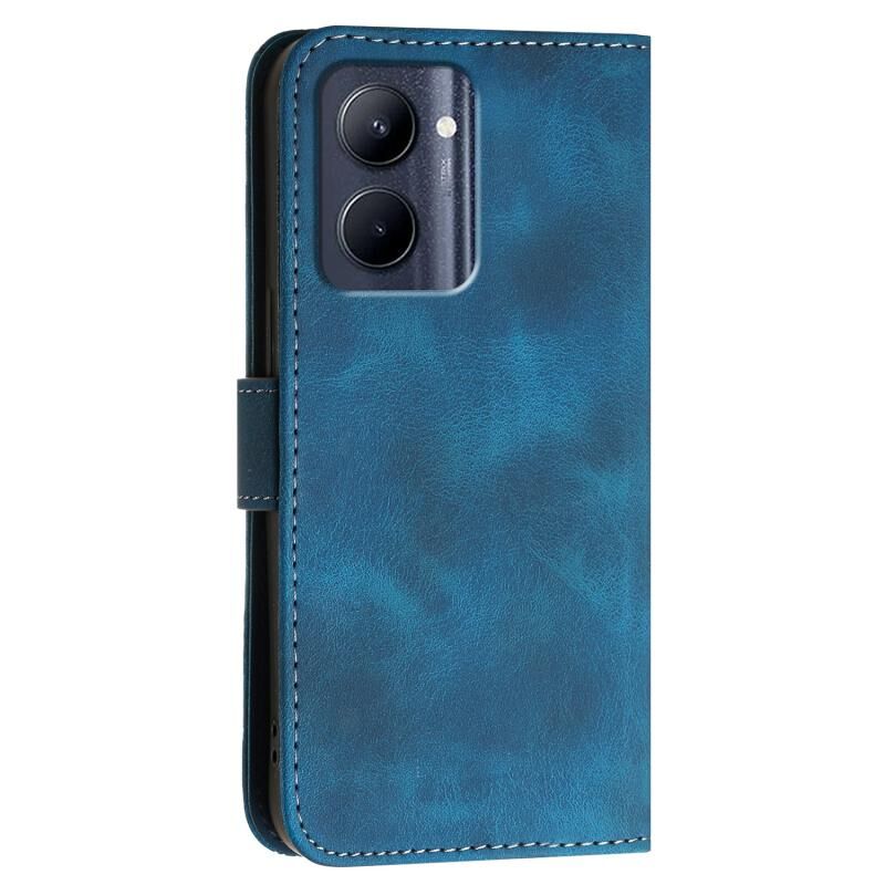 For Realme C33 Global Grid Butterfly Embossed Pattern Leather Phone Case with Lanyard(Dark Blue)