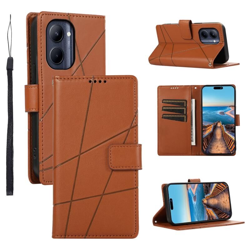 For Realme C33 PU Genuine Leather Texture Embossed Line Phone Case(Brown)