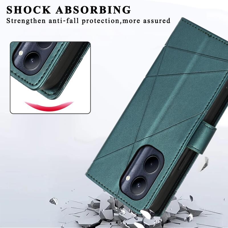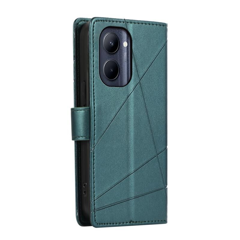 For Realme C33 PU Genuine Leather Texture Embossed Line Phone Case(Green)