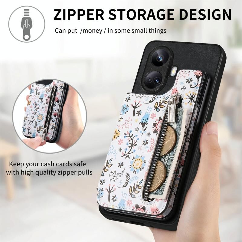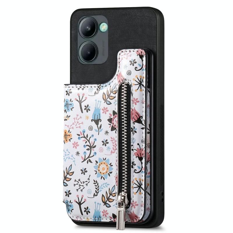 Για Realme C33 Ρετρό ζωγραφισμένο φερμουάρ πορτοφόλι πίσω θήκη τηλεφώνου (Μαύρο)