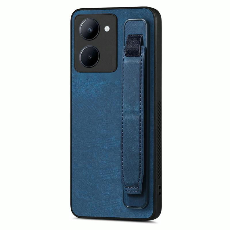 For Realme C33 Retro Wristband Holder Leather Back Phone Case(Blue)