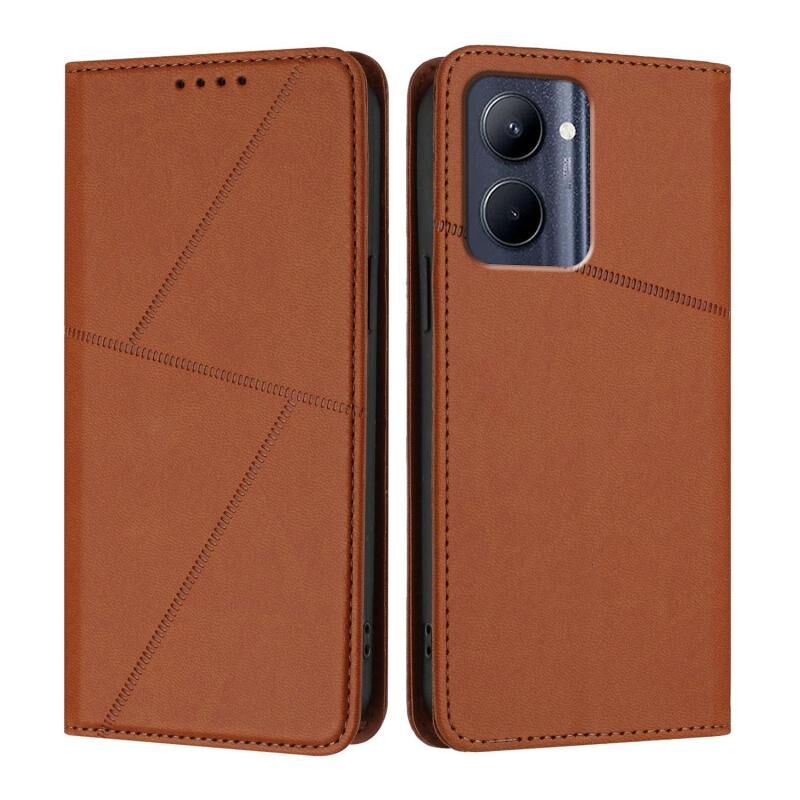 For Realme C33 Strong Magnetic Frosted Flip Leather Phone Case(Coffee Color)