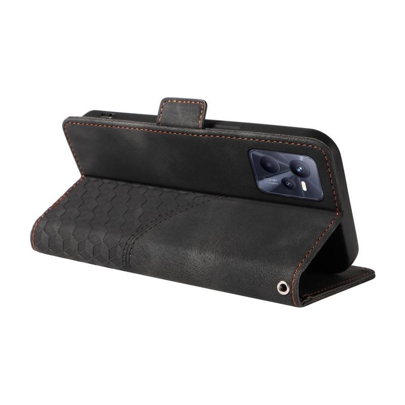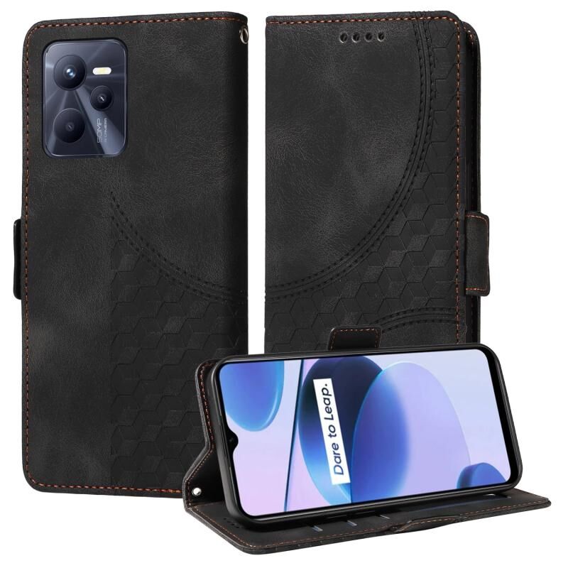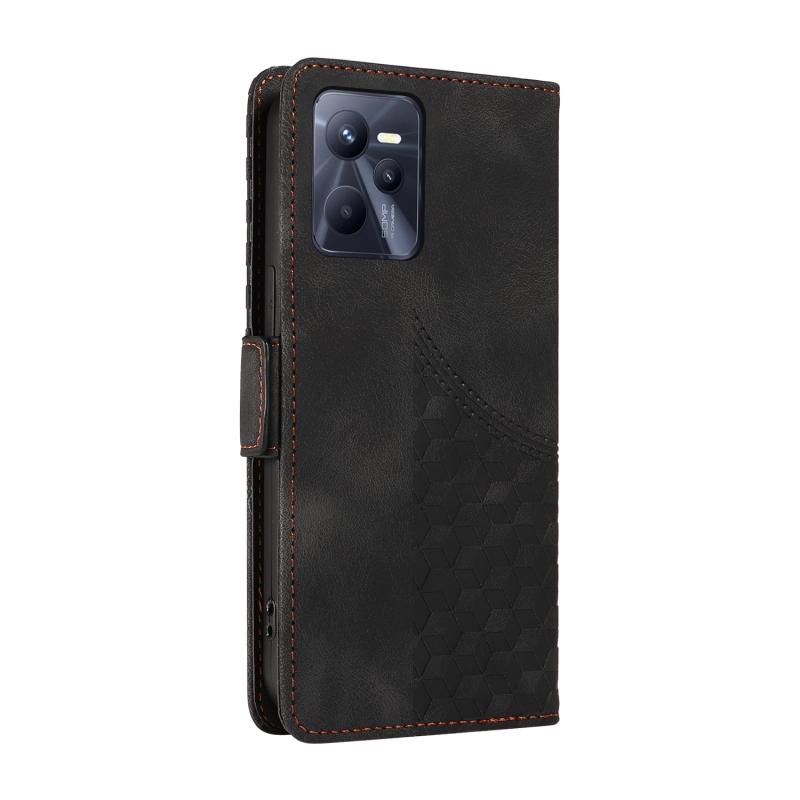 For Realme C35 4G Embossed Rhombus Starry Leather Phone Case(Black)