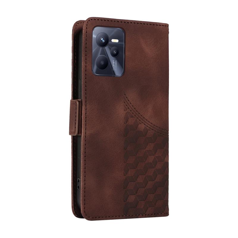 For Realme C35 4G Embossed Rhombus Starry Leather Phone Case(Brown)