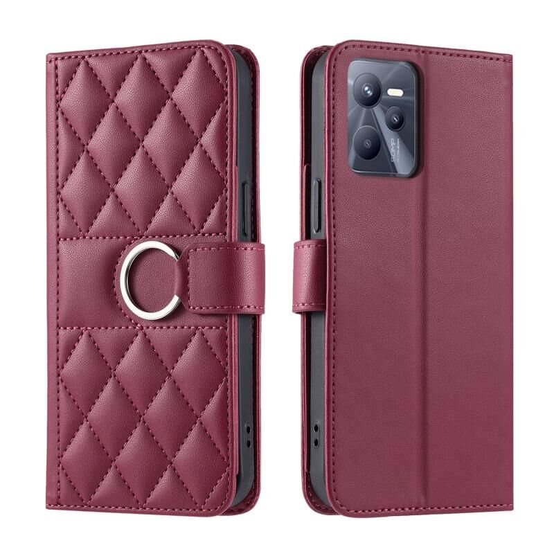 For Realme C35 4G Ring Buckle Rhombic Leather Phone Case(Red)