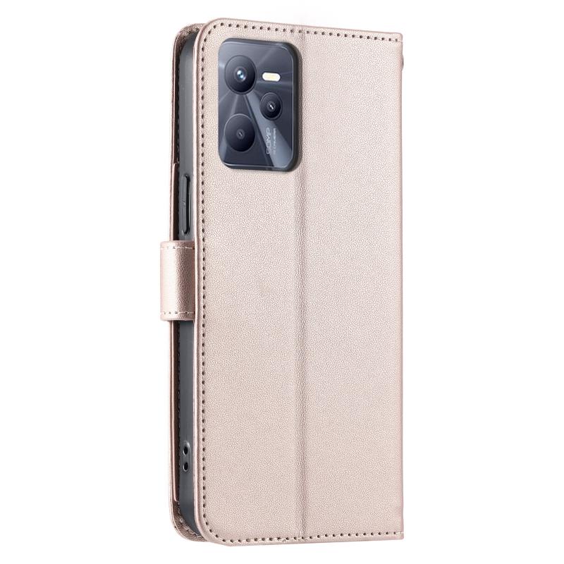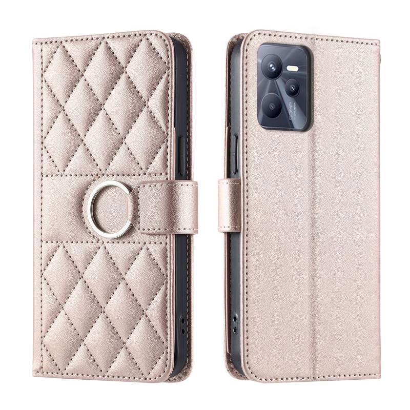 For Realme C35 4G Ring Buckle Rhombic Leather Phone Case(Rose Gold)