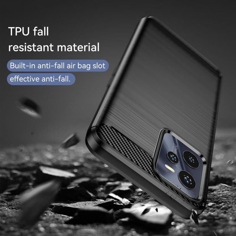 Για Realme C35 βουρτσισμένη υφή Carbon Fiber TPU τηλέφωνο υπόθεση (μαύρο)