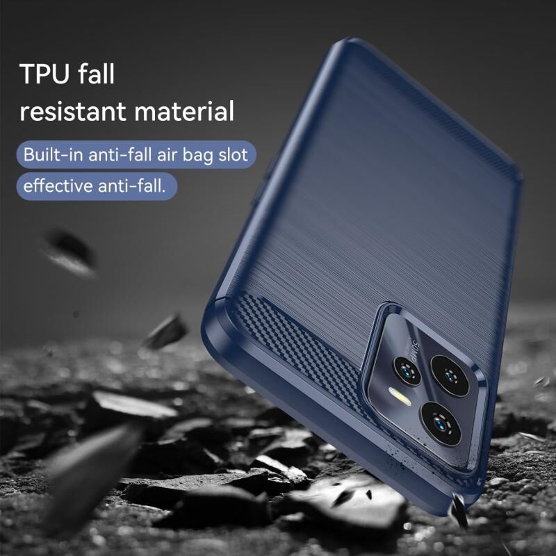 Για Realme C35 βουρτσισμένη υφή Carbon Fiber TPU τηλέφωνο υπόθεση (μπλε)