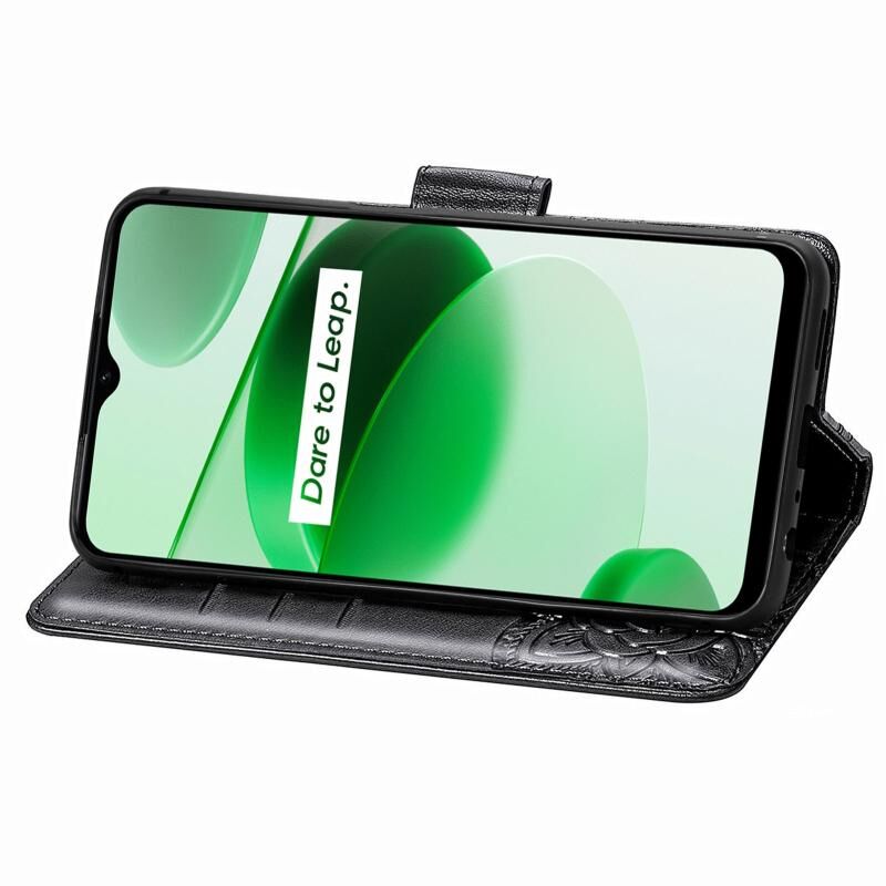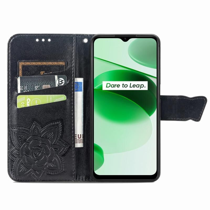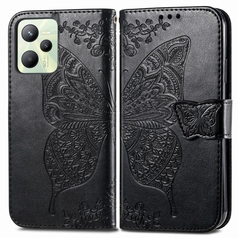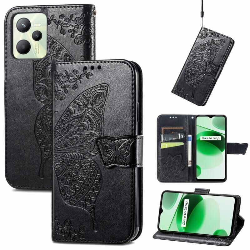 Θήκη τηλεφώνου Realme C35 Butterfly Love Flower Embossed Flip Leather (Μαύρο)