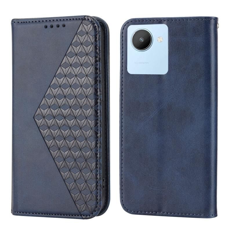 Για Realme C35 Cubic Grid Calf Texture μαγνητικό κλείσιμο δερμάτινη θήκη τηλεφώνου (μπλε)