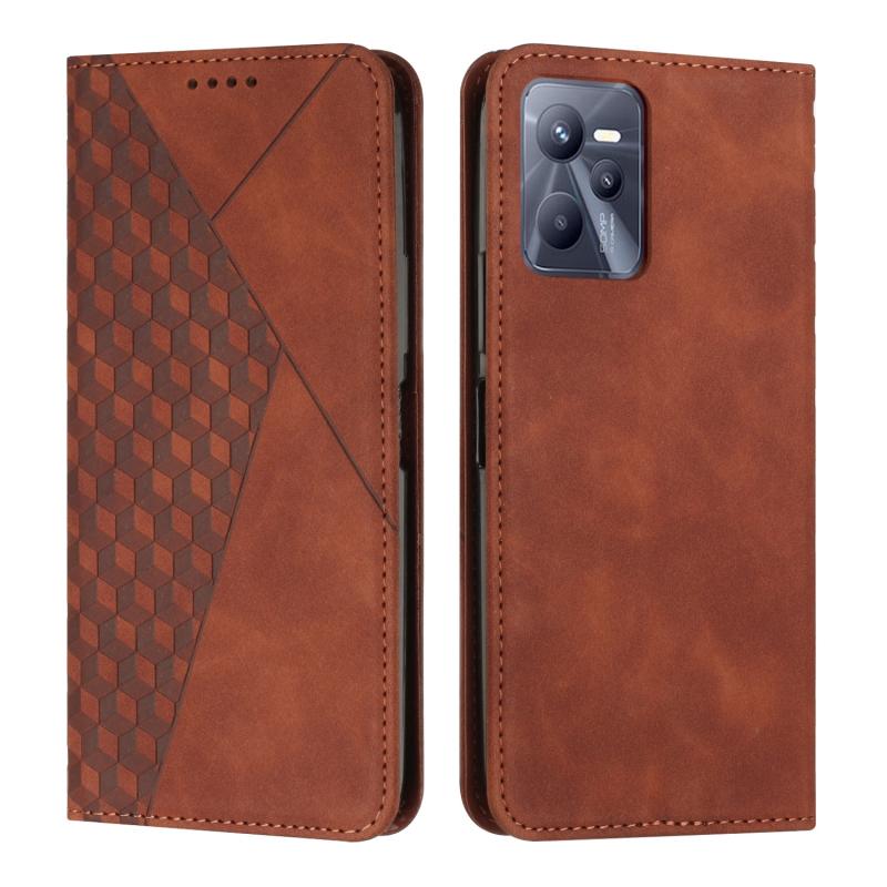 For Realme C35/Narzo 50A Prime 4G Diamond Splicing Skin Feel Magnetic Leather Phone Case(Brown)