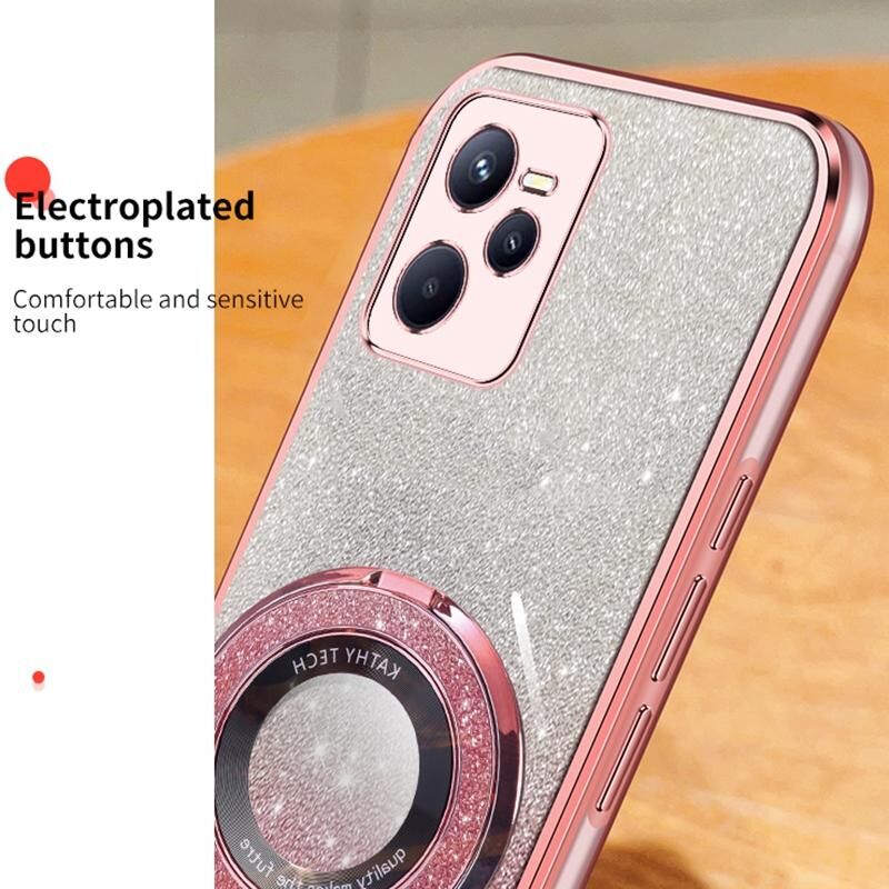 For Realme C35 Plated Gradient Glitter Round Holder TPU Phone Case(Sierra Blue)