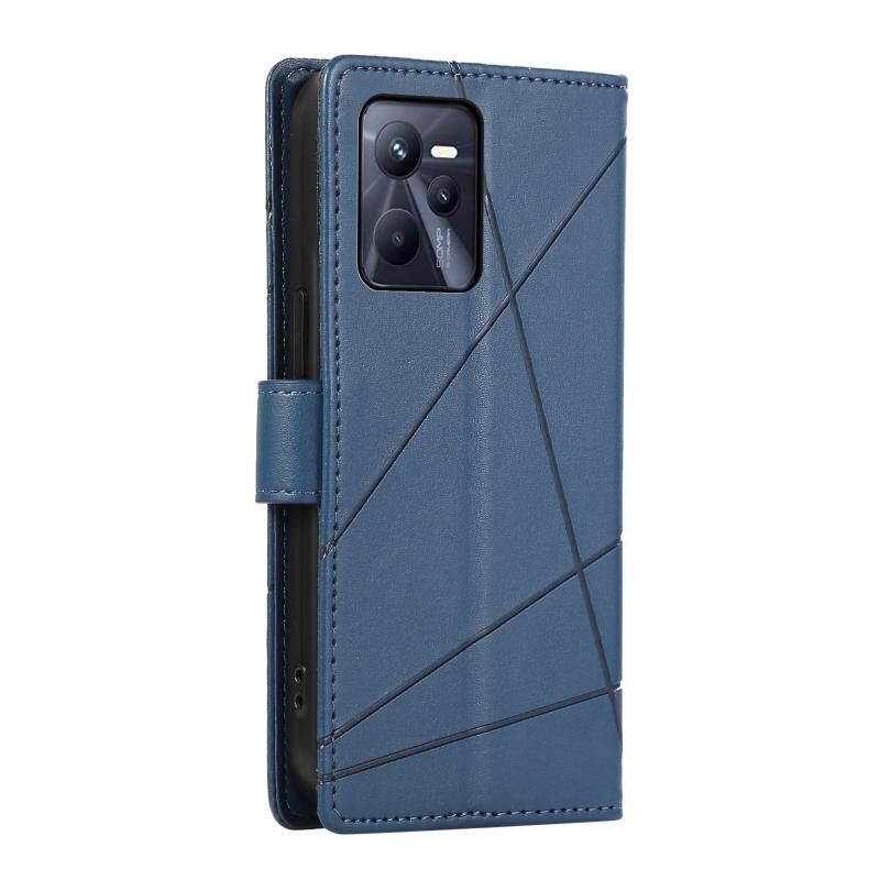 For Realme C35 PU Genuine Leather Texture Embossed Line Phone Case(Blue)