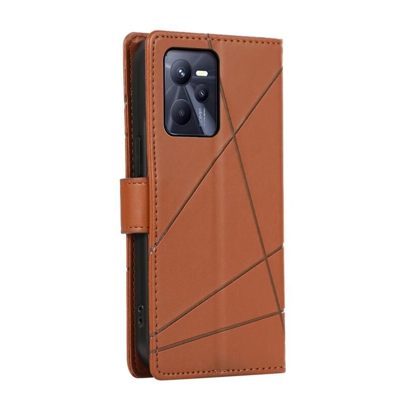 For Realme C35 PU Genuine Leather Texture Embossed Line Phone Case(Brown)