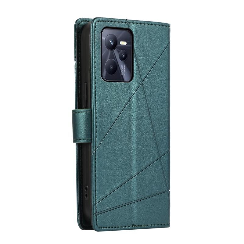 For Realme C35 PU Genuine Leather Texture Embossed Line Phone Case(Green)