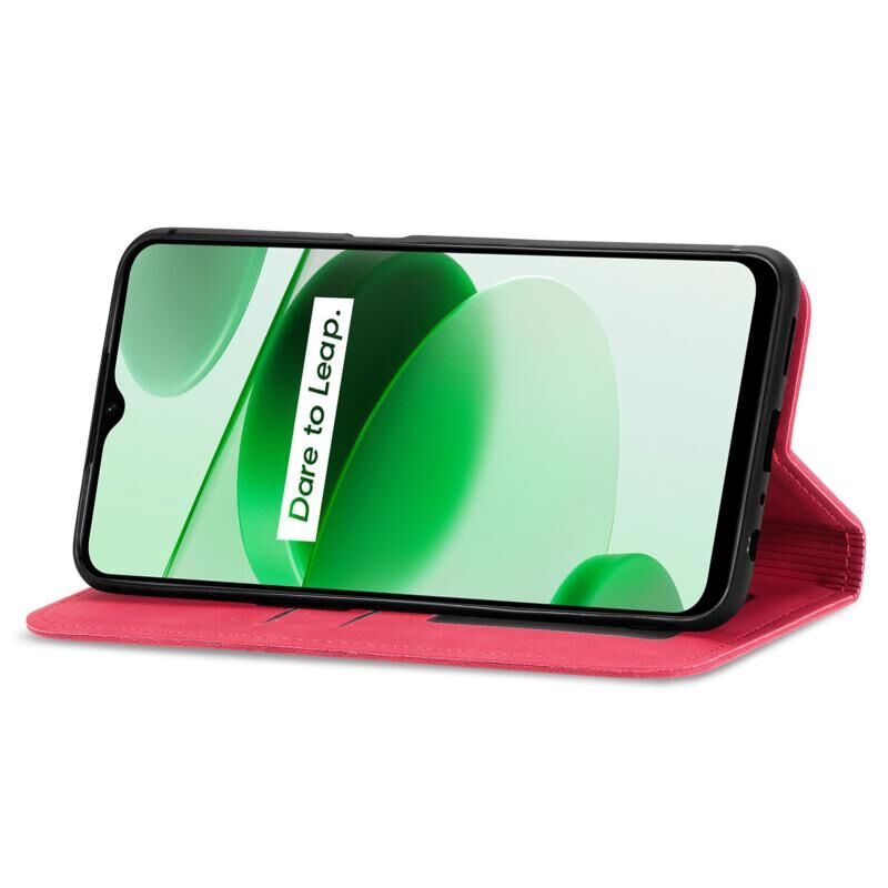 Για το Realme C35 Retro δέρμα αίσθηση μαγνητική δερμάτινη θήκη τηλεφώνου (κόκκινο)