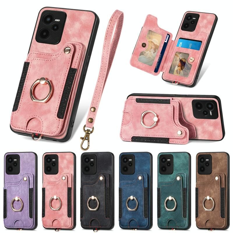 Για Realme C35 Ρετρό δέρμα αίσθηση δαχτυλίδι πολυ-κάρτα πορτοφόλι υπόθεση τηλεφώνου (μωβ)