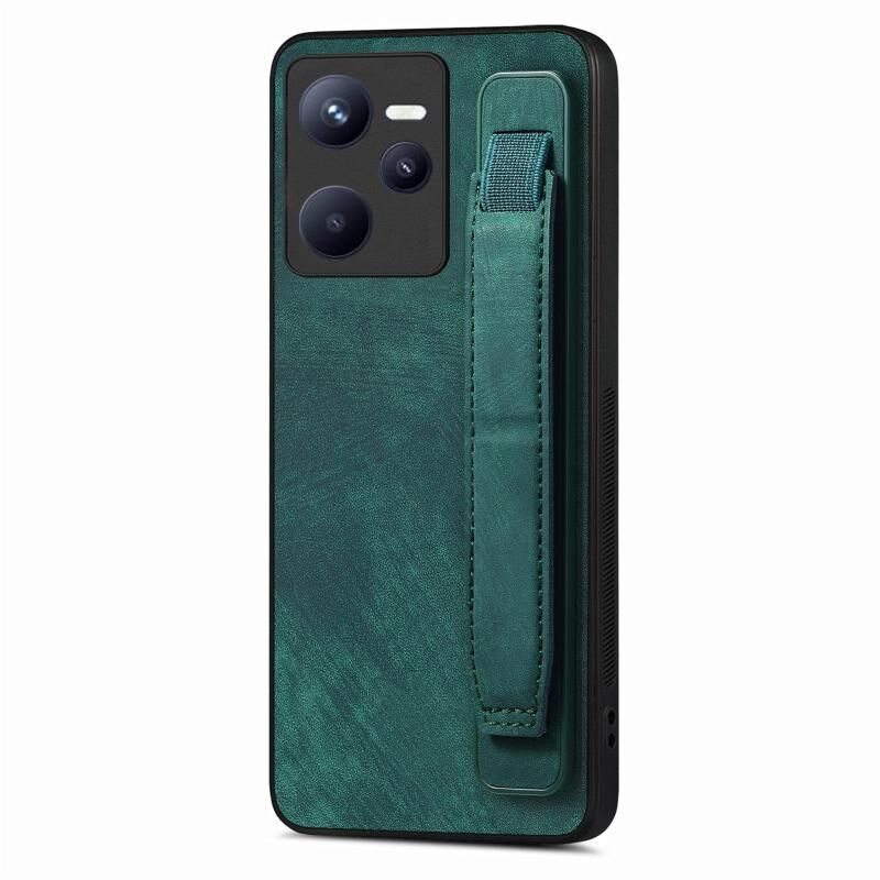 Για Realme C35 Ρετρό Wristband κάτοχος δέρμα πίσω τηλέφωνο υπόθεση (πράσινο)
