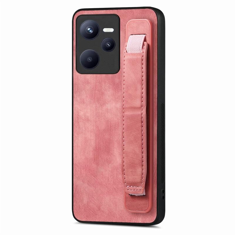 Για Realme C35 Ρετρό Wristband Holder δέρμα πίσω υπόθεση τηλεφώνου (ροζ)