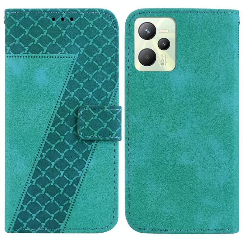 Θήκη τηλεφώνου Realme C35 από δέρμα με ανάγλυφο σχέδιο επτά (Πράσινο)