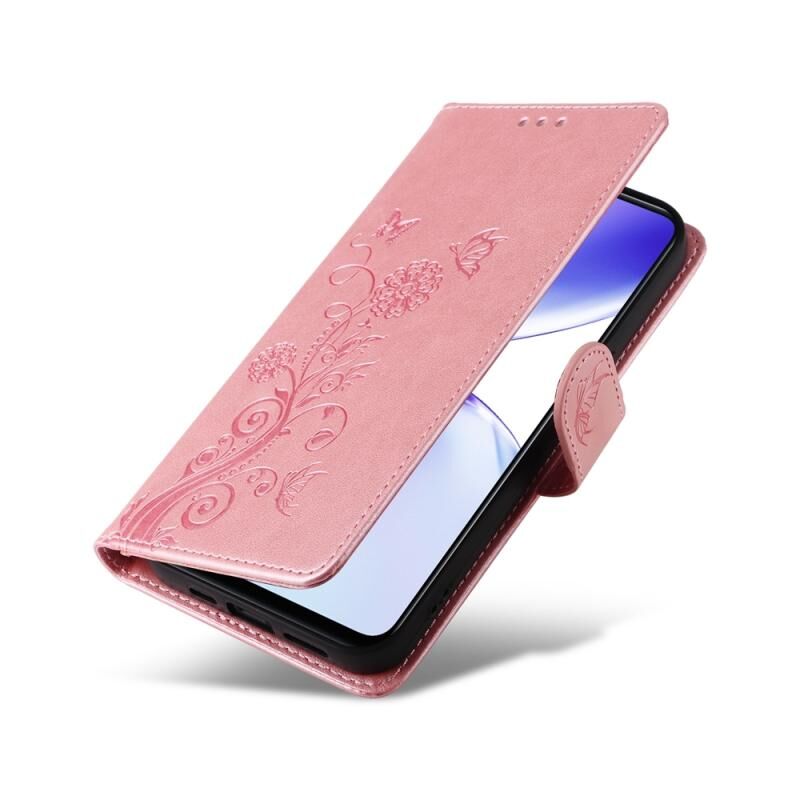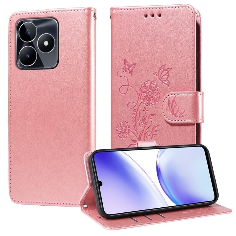 For Realme C51 / C53 / Narzo N53 / Note 50 Embossed Butterfly Flowers Leather Phone Case(Rose Gold)