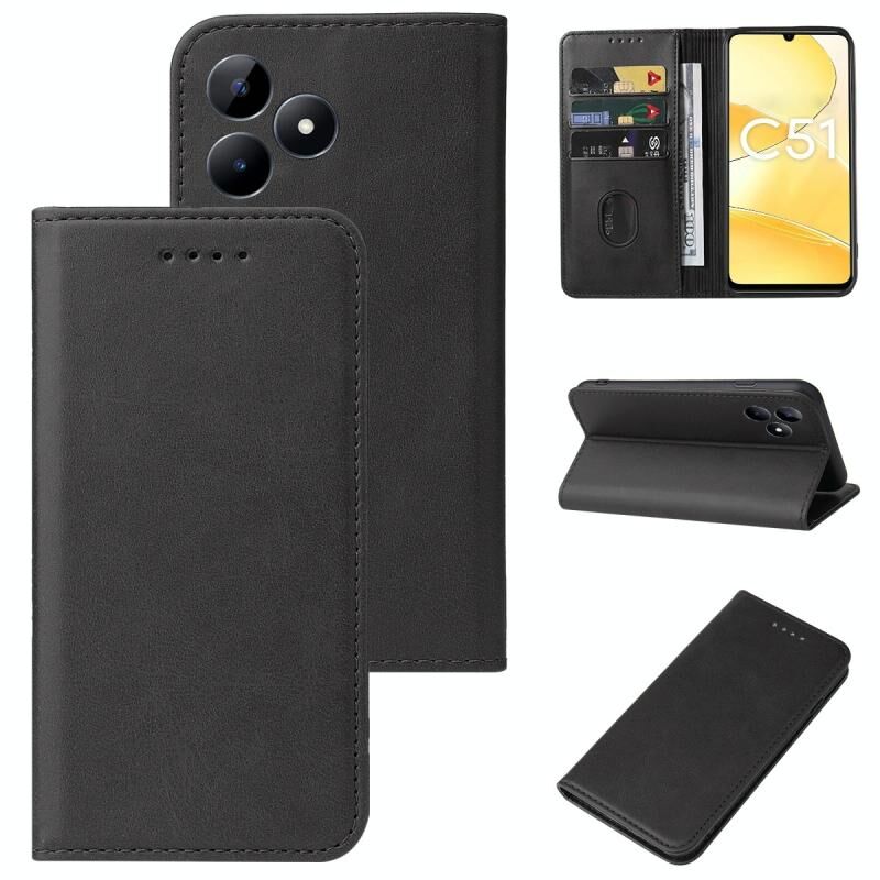 Για Realme C51 Μαγνητικό κλείσιμο δερμάτινη θήκη τηλεφώνου (Μαύρο)