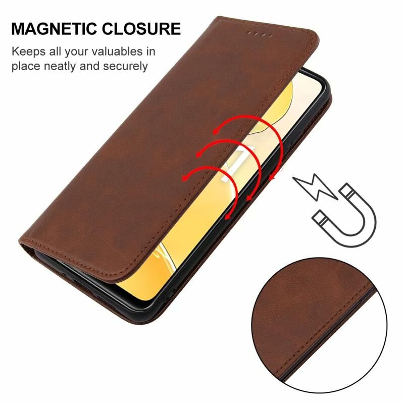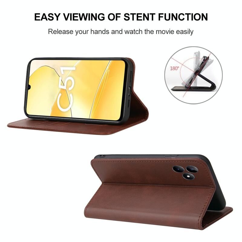 Για Realme C51 Μαγνητικό κλείσιμο δερμάτινη θήκη τηλεφώνου (καφέ)
