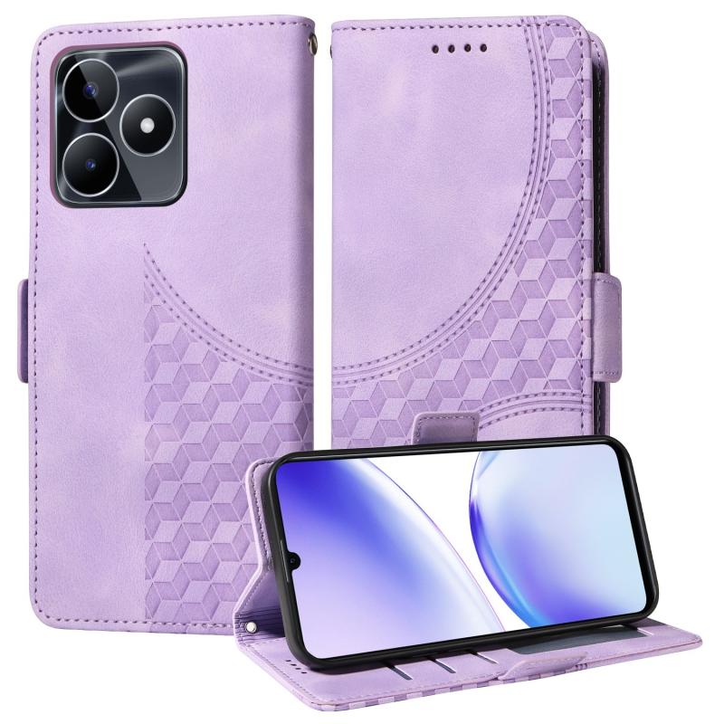 For Realme C51 / Note 50 4G Embossed Rhombus Starry Leather Phone Case(Purple)