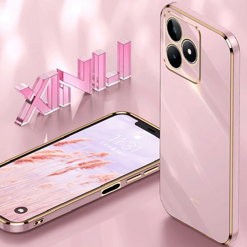 Για Realme C53 2023 XINLI Εύθια Θήκη Τηλεφώνου TPU με Επικάλυψη Χρυσού Χείλους 6D (Μαύρο) (XINLI)
