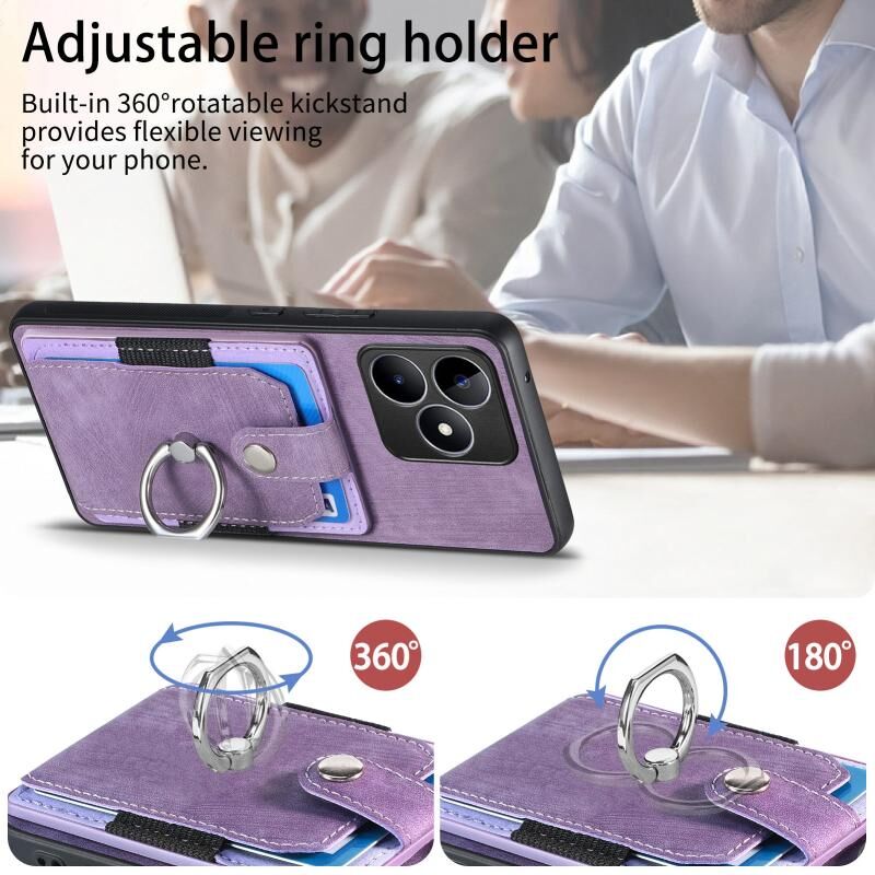 Για Realme C53 4G Ρετρό δέρμα αίσθηση δαχτυλίδι πολυ-κάρτα πορτοφόλι υπόθεση τηλεφώνου (μωβ)