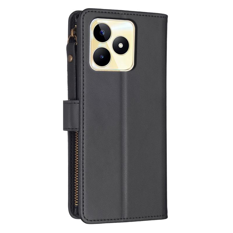 Για Realme C53 Θήκη Τηλεφώνου Δερμάτινη Flip με Φερμουάρ και 9 Θήκες Καρτών (Ανοιχτό Μωβ)