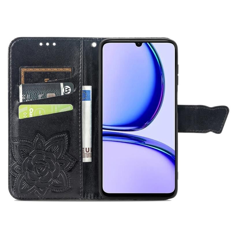 Θήκη τηλεφώνου δερμάτινη ανάγλυφη με σχέδιο πεταλούδας και λουλουδιών για Realme C53 (Ροζ)